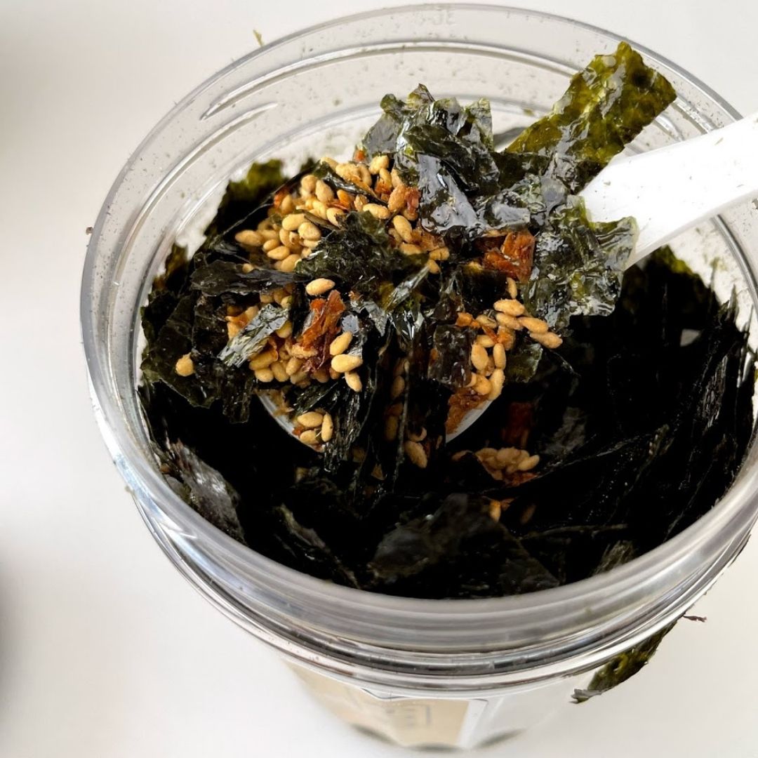 原材料:乾のり(国内産)、醤油、砂糖、みりん、食塩、えび、昆布、かつお削り節、唐辛子、きな粉、ごま/調味料(アミノ酸等)、甘味料(カンゾウ)、(一部に大豆・小麦・えび・ごまを含む)